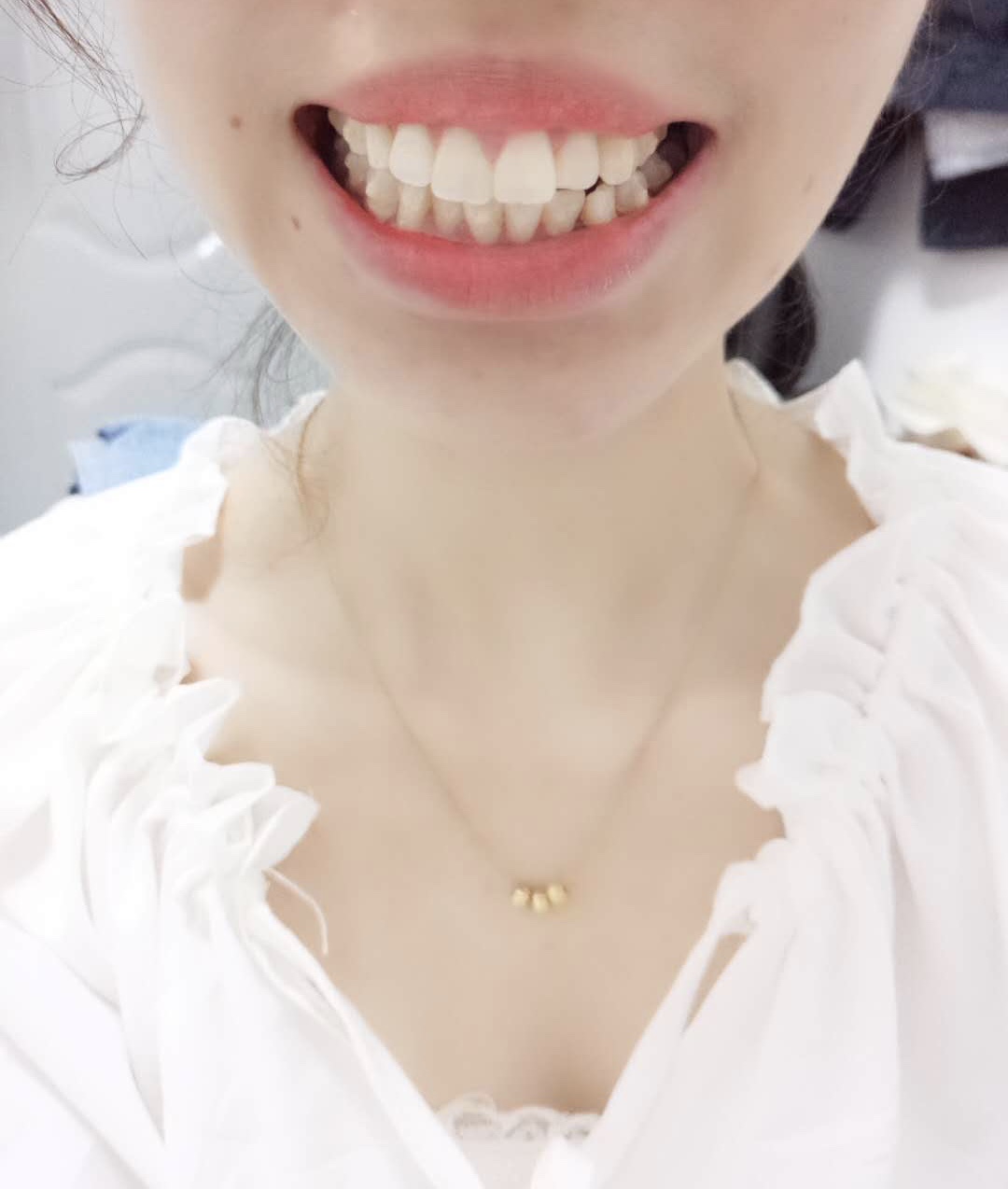 阅读:4879即将完成第九副牙套的佩戴,给予我的感受就是牙齿矫正真的可以变美,虽然我长得不咋地,但也不能因为牙齿丑显得人就更丑了,包括大笑露齿,总有些人说我牙不好看,但是遇到美加并带上牙套之后,微笑露齿毫不畏惧,哈哈哈哈~前天休息和小姐姐去探店,小姐姐都怀疑我是不是去做什么手术了,牙齿整齐许多,还没看到我带牙套,直到去吃晚饭在洗手间卸下牙套时,她才看的出来,才要完成第九副,快要完成第一个阶段的矫正,准备去做第二幅牙模,开心期待,附上第一次佩戴牙套,期间佩戴及目前佩戴直视图和小姐姐拍的露齿照