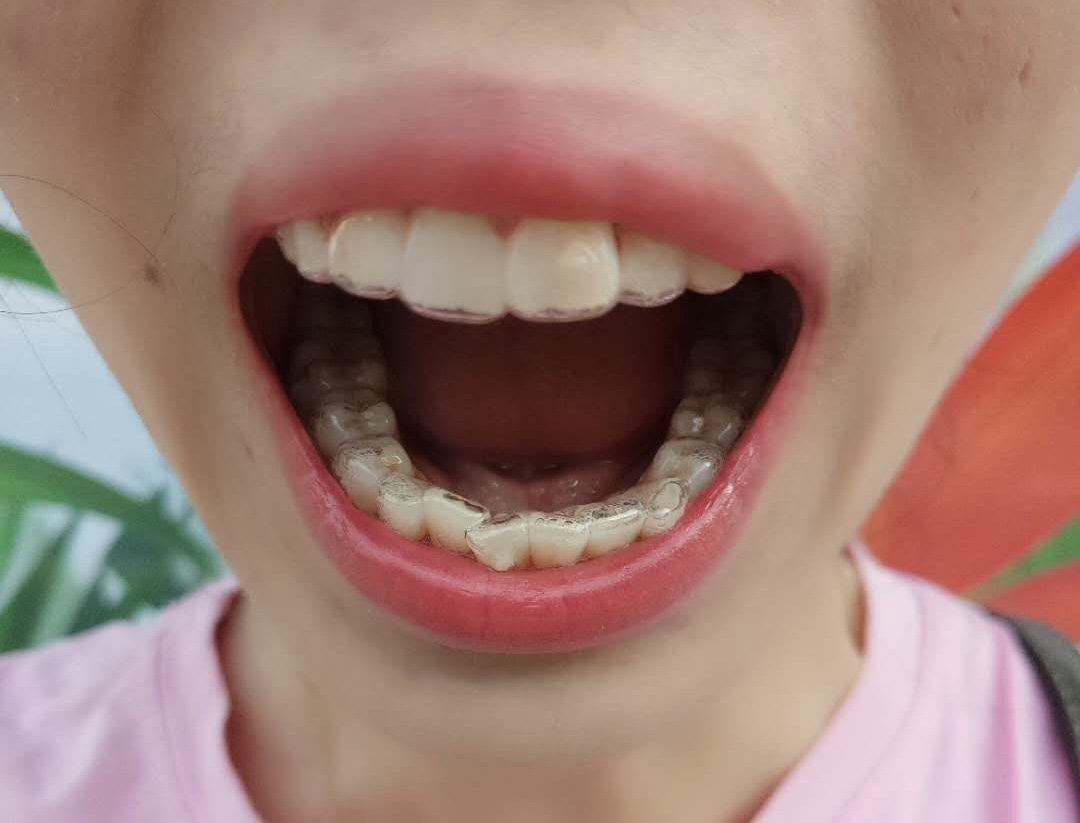 终于结束第五套和第六套牙套的佩戴了,感觉时间过得稍快,由于前期把我的门牙大致矫正后,现在戴牙套不会觉得牙齿太过酸痛,牙齿在微矫正加力,不会感觉难受不适,感觉我的门牙越来越正了,哎呀呀,离变美越来越近了,现在固定一天戴20h,但有时候吃饭就没坚持够,这个得好好改改,相信美加的技术,最后附上照片。
